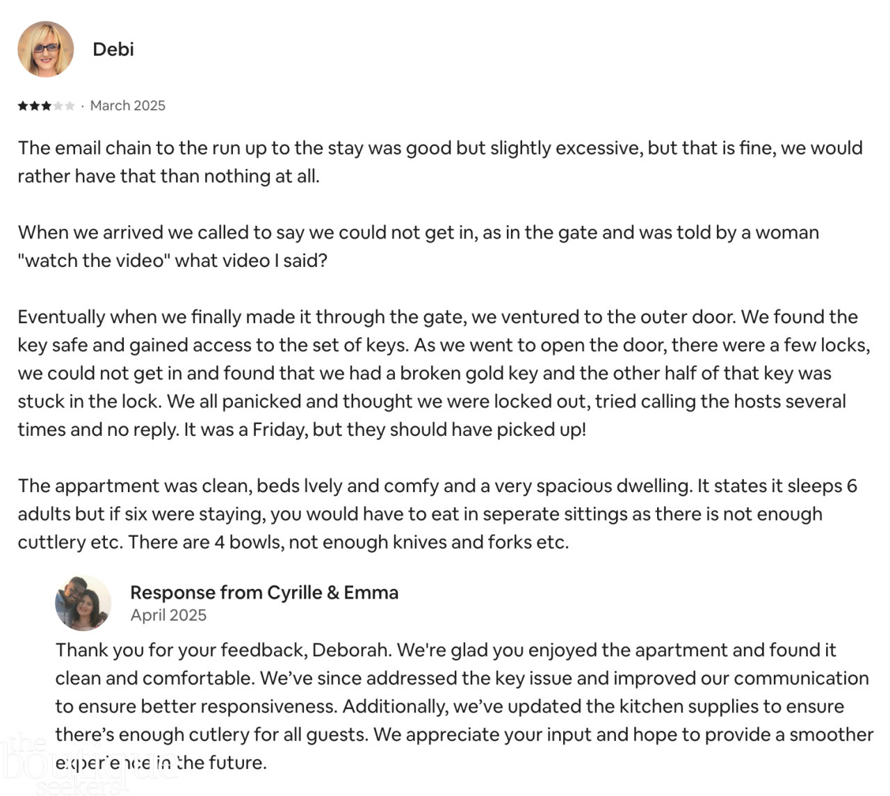In all, it is a spacious and stylish dwelling, well-suited for a group stay once the initial arrival details are smoothed out. With small refinements in guest readiness and attention to detail, it could reach the level of excellence its design and comfort clearly aspire to.